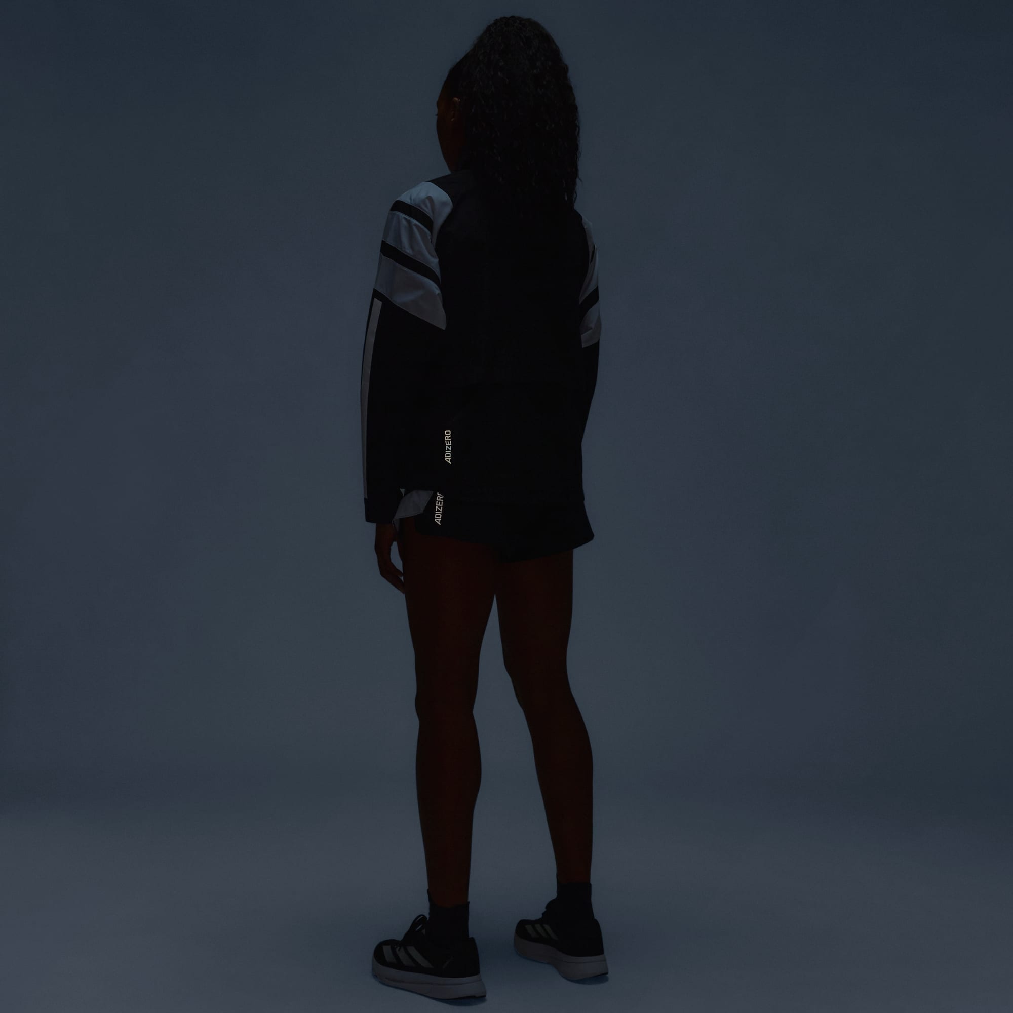 Channel the spirit of the past while running in the present in this adidas Adizero running jacket. Lightweight ripstop fabric with underarm vent panels offers versatile performance for warm-ups and cool-downs. Reflective details add low-light visibility and a durable water-repellent treatment resists damp conditions.