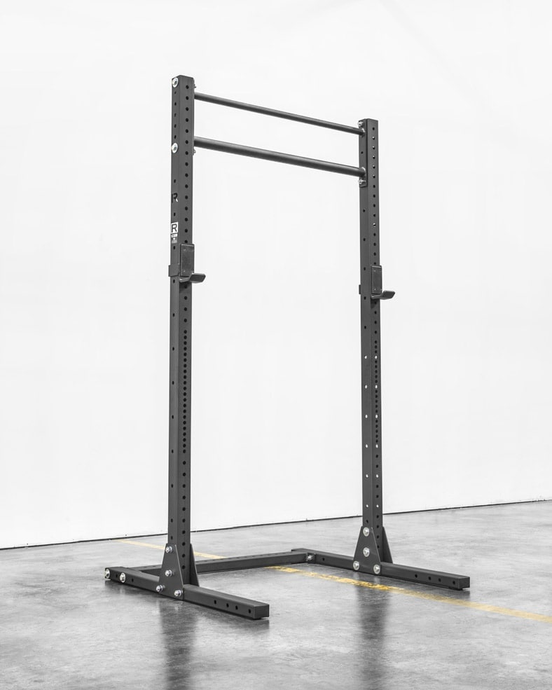 The SML-2 Monster Lite Squat Stand delivers much of the strength and versatility of a power rack in an efficient, compact frame. Featuring 3×3” 11-gauge steel uprights, an adjustable fat/skinny pull-up bar, and 5/8” holes in the Westside spacing pattern, it’s an affordable hybrid of Rogue’s 90” S-2 and Monster SM-2 squat stands.