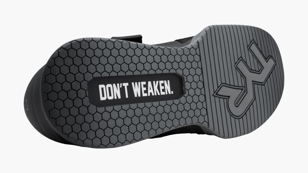 For nearly 40 years, TYR has been a prominent name in the specialized athletic apparel space and has now introduced a premium range of weightlifting and cross-training shoes which have been quickly adopted by top strength athletes in the world. This is why we have collaborated with TYR to bring you an exclusive Rogue L-1 Lifter design, featuring the Rogue logo and “DON’T WEAKEN.” slogan on the soles of the shoes.